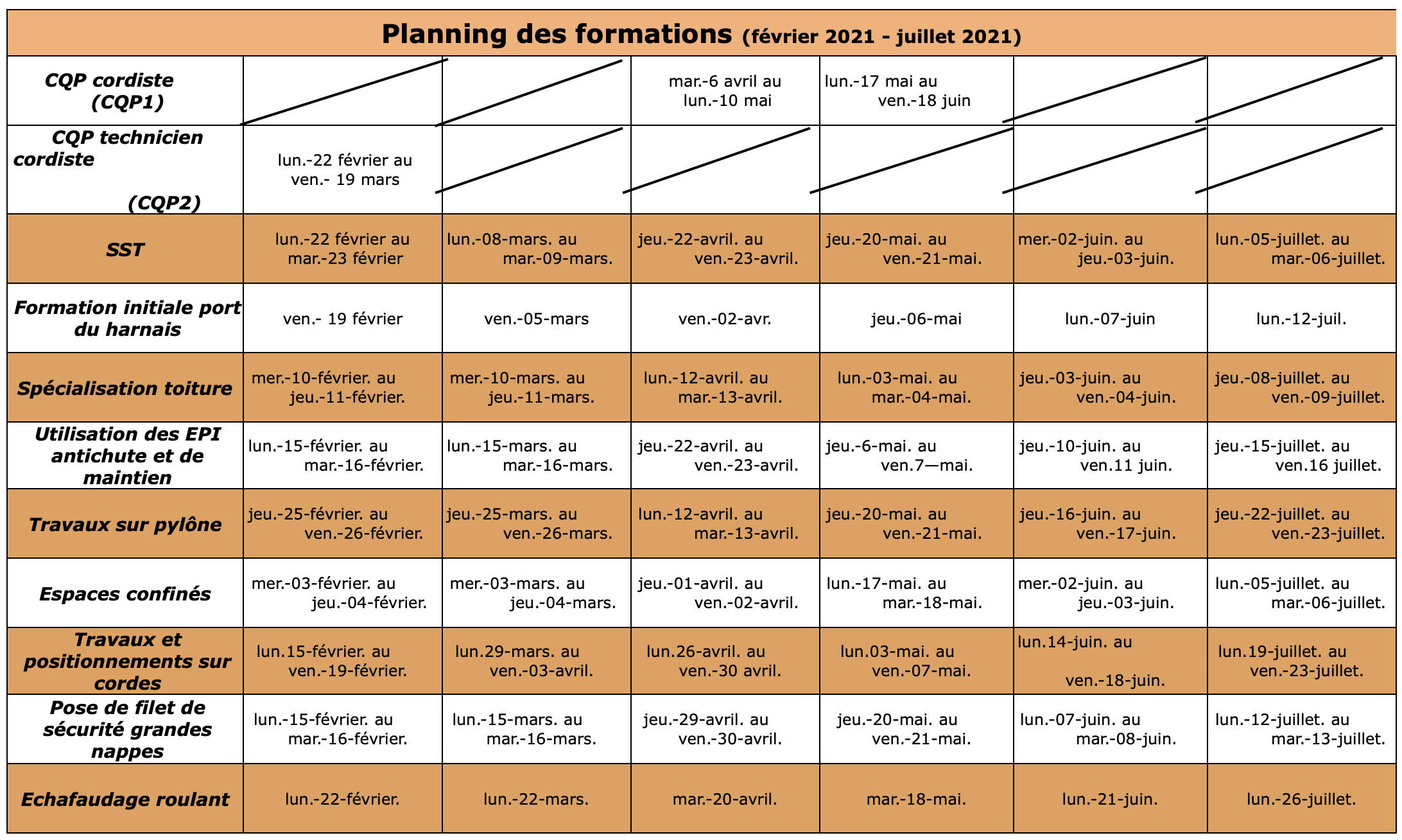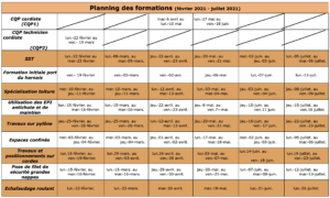 Planning des sessions de formation