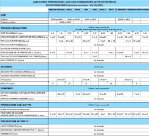 Planning des sessions de formation